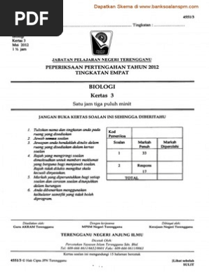 Biologi Kertas 3 Ting 4 Pertengahan Tahun 2012 Terengganu Pdf